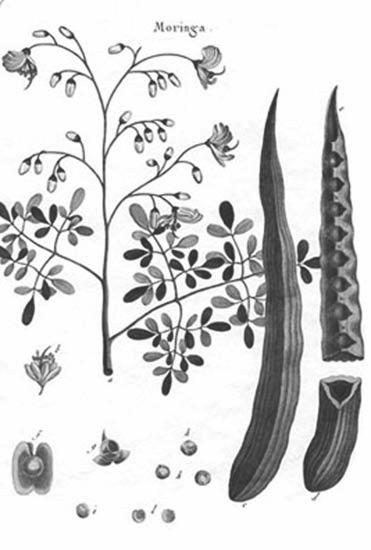 dish ) en alusión al sabor ( radish = rábano) de sus raíces o drumstick tree, por la forma de sus vainas; en el valle del Nilo recibe el nombre de Shagara al Rauwaq que signifca, árbol para purifcar, pero las denominaciones de Miracle Tree , Tree of Life , o Mother’s Best Friend entre otras, nos indican la importancia de este árbol en los países en que se cultiva y emplea.